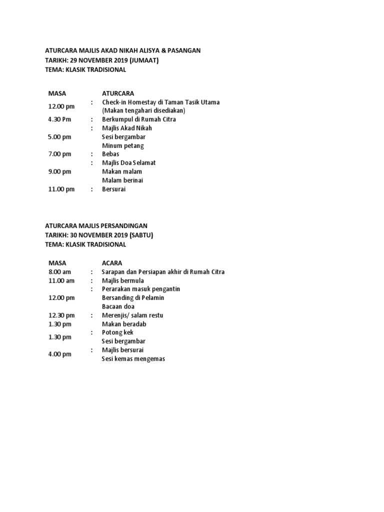 5 aturcara majlis makan malam alumni. Yang berusaha cikgu hajah fatimah hamid. Contextual translation of aturcara majlis makan malam into english. Persiapan untuk mengendalikan majlisuntuk pejabat yang kecil mungkin mudahkerana mempunyai kakitangan yangsedikit tetapi jika kakitangan yang adamencecah bilangan ratusan, bagaimanaharus anda mulakan? 8.45 malam bacaan doa 8.50 malam ucapan ketua pengarah: