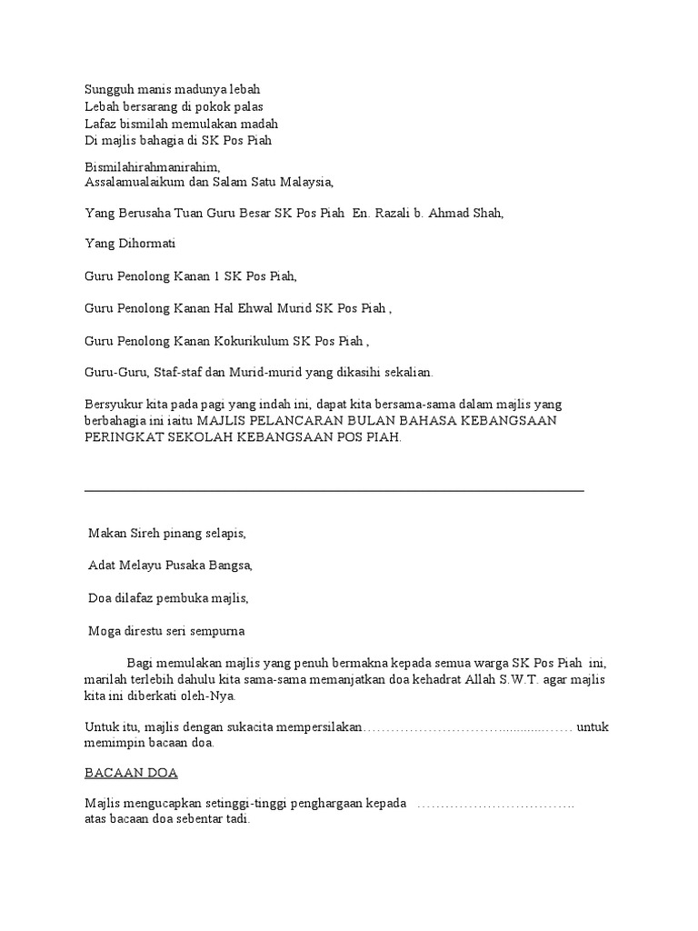 Related : Teks Pengacara Majlis Pelancaran Minggu Ppda : Contoh teks pengacara majlis / juruacara majlis..