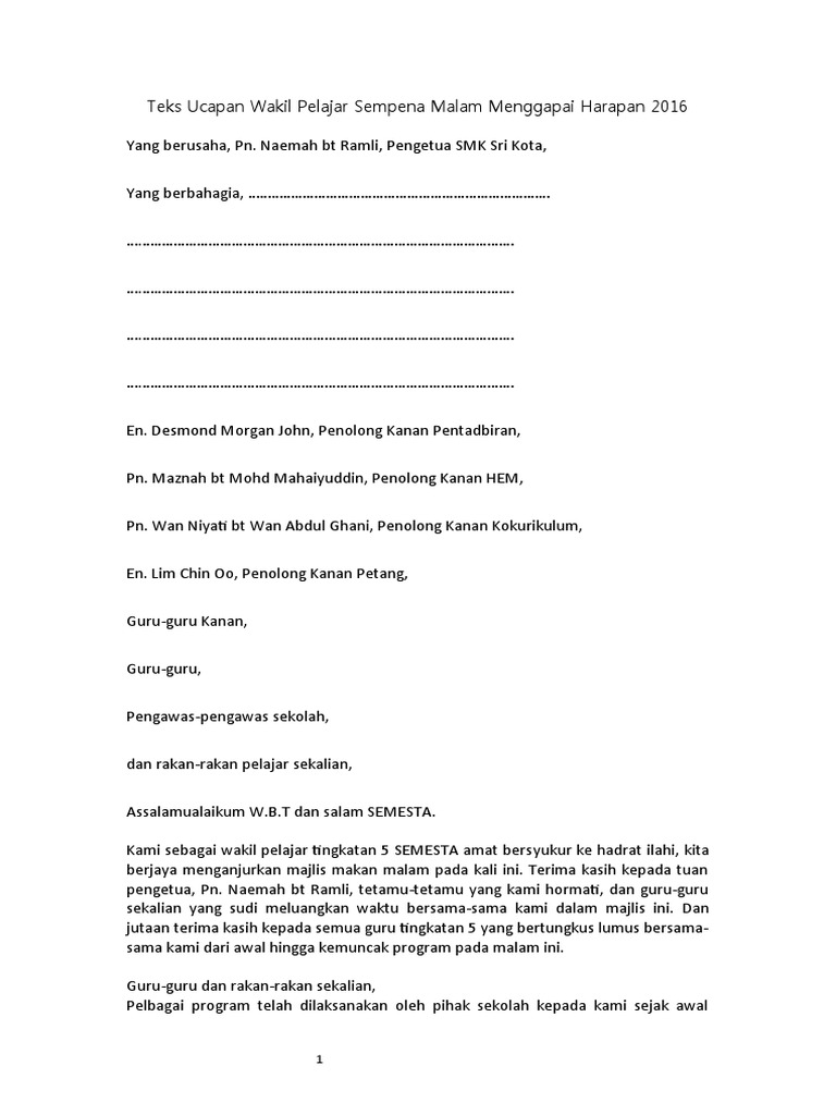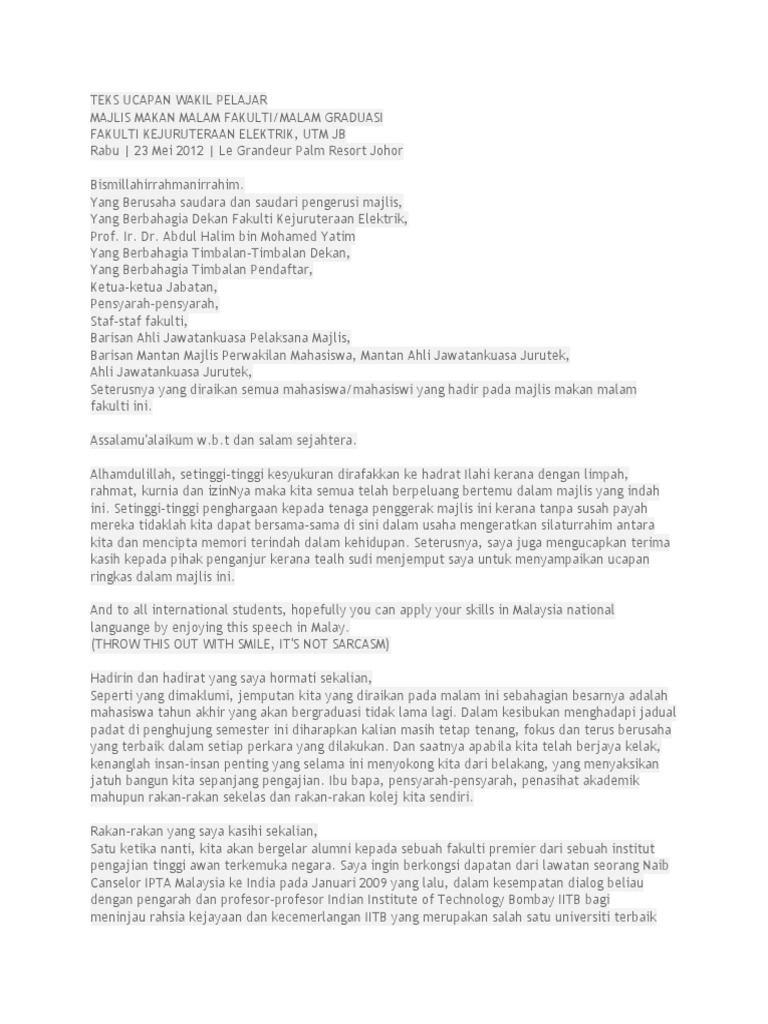 2017age 2019 09 teks ucapan. Text teks ucapan naib canselor sempena majlis makan malam dan pelancaran program baharu radio kampus kita fm universiti malaysia sabah (ums).pdf download (113kb) | preview. Hadiah daripada wakil badan pengawas smk bukit besar 2011. Ucapan wakil pelajar majlis perpisahan guru contoh two. Ribuan terima kasih atas kesudian para pensyarah dan pelajar hadir ke majlis makan malam ini.