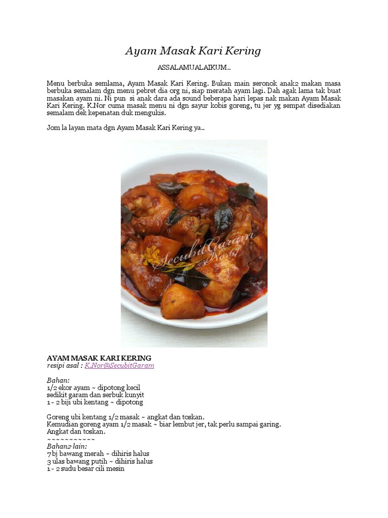 Ayam Masak Merah Mudah Buat Orang Lapo from i1.wp.com Rupanya ayam masak merah lebih sedap dimasak tanpa santan, lebih berkilat dan merah warnanya serta lebih tahan lama taurahsianya selain tidak perlu meletakkan santan. Selain rasanya enak, daging ayam mudah dikreasikan menjadi beragam menu masakan utama maupun makanan camilan, seperti ayam goreng, ayam bakar, soto ayam, opor ayam, risoles, bakpao, lemper, dan sebagainya. Resepi ayam masak merah yang ini diambil dari blog ana suzana yang dipelajari dari ayahnya yang merupakan seorang tukang masak bagi majlis kenduri kawin yang tersohor di kampung beliau. Hari minggu ni saya dan keluarga tak ke mana. Makan ayam goreng semakin nikmat dengan cocolan berupa sambal terasi. Kendati digemari banyak orang karena dianggap lebih aman. Siapa kata masakan masak merah hanya untuk ayam sahaja? Kekadang tu, diratah jer daging ayam tu tanpa nasi.